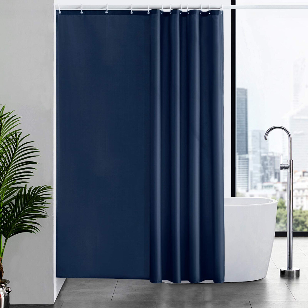Furlinic Shower Curtain Mould Proof Wetroom Bathroom Polyester Fabric Navy Shower Curtains Liner Waterproof Rustproof Washable Weighted with 16 Hooks
