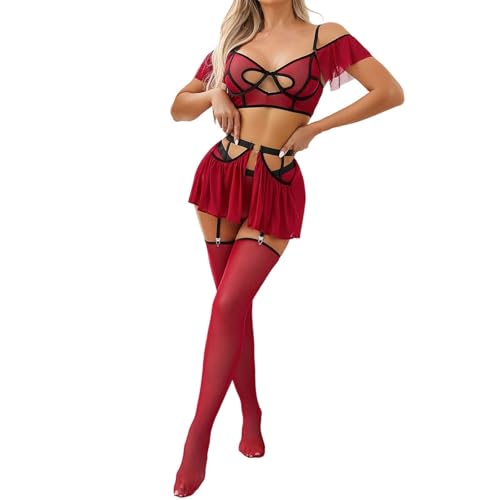 sutelang lurryly Sexy Lingerie for Women Sets Naughty - Women'S See Through Off Shoulder Sexy Lace Hollow Out Heart Design Lingerie Set With Garter Stockings for Home And Leisure