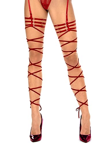 LOVE YOU SEXY Women Sexy Lingerie Strappy Garter Straps Stockings DIY Crisscross Stockings for Clips, Cherry Red, M-L
