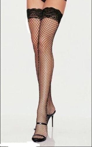 Ladies Sexy Lingerie Black Fishnet Stockings with 5cm Lace Tops