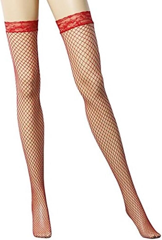Ladies Sexy Lingerie Red Fishnet Stockings with Lace Tops Fancy Dress