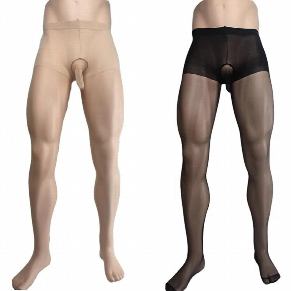 Male Sissy Fetish Mens Sheer Pantyhose Tights Stockings with Crotch Sheath Erotic Fantasy Lingerie for Him and Beige