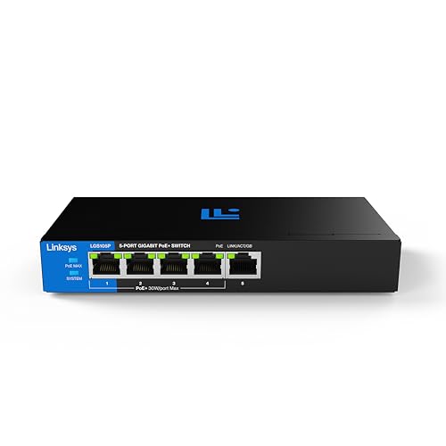 Linksys 5-Port Gigabit Unmanaged PoE+ Switch | Energy-Efficient Ethernet | Full-Duplex Flow Control | Ideal for Small and Home Offices | Fanless Design and Metal Casing | 60W PoE Budget