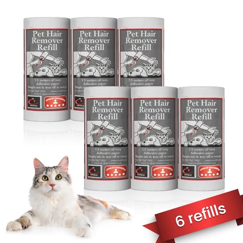 CARASELLE Pet Hair Remover Refill - Super Adhesive - Picks up Lint, Hair & Debris! Multi-Purpose Dog Cat Hair Lint Roller also for Cleaning Clothes & Washing Machine (7.5 metres, pack of 6 refills)