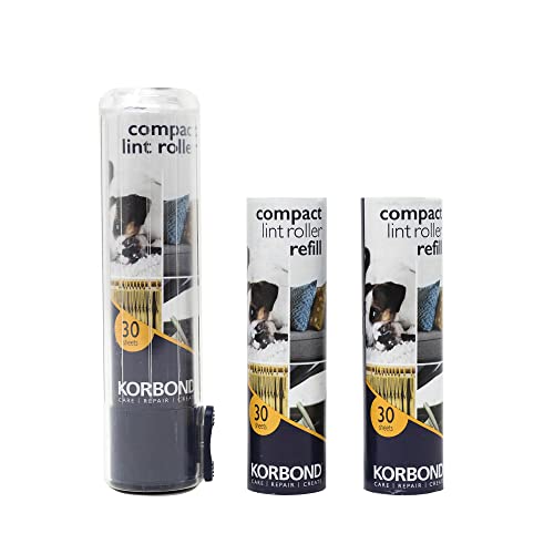 Korbond Compact Lint Roller & Refills - Travel Sized Lint Remover Roller - Included 3 Rolls of Sticky Sheets - Mini Lint Roller Perfect for Travel