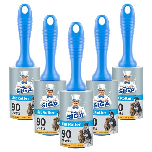MR.SIGA Extra Sticky Lint Roller Pet Hair Remover with Easy Tear Sheets, 450 Sheets in Total, 5-Pack, Blue