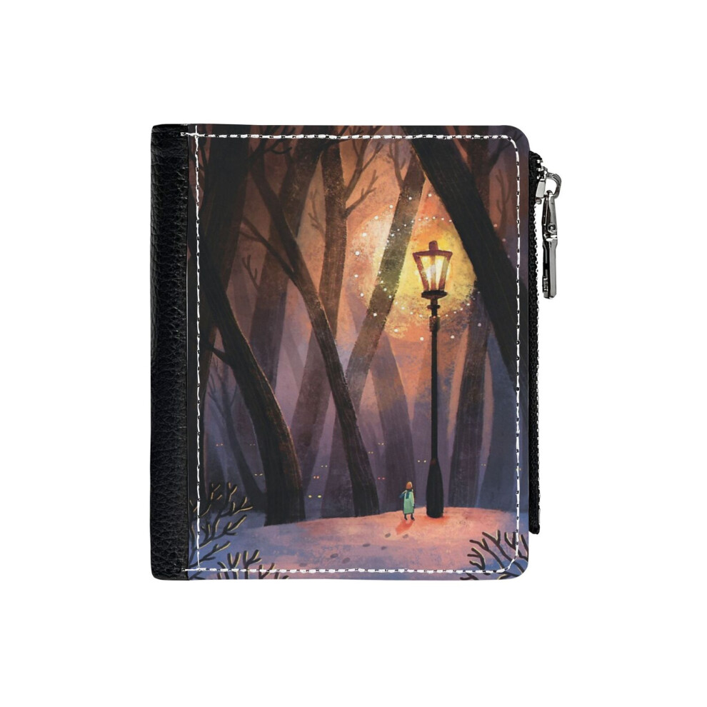 (The Lion, The Witch And The Wardrobe_91) PU Wallet Compact Bifold with Zipper & Multiple Card Coins Slots Black Stylish Durable Graphic Design Print