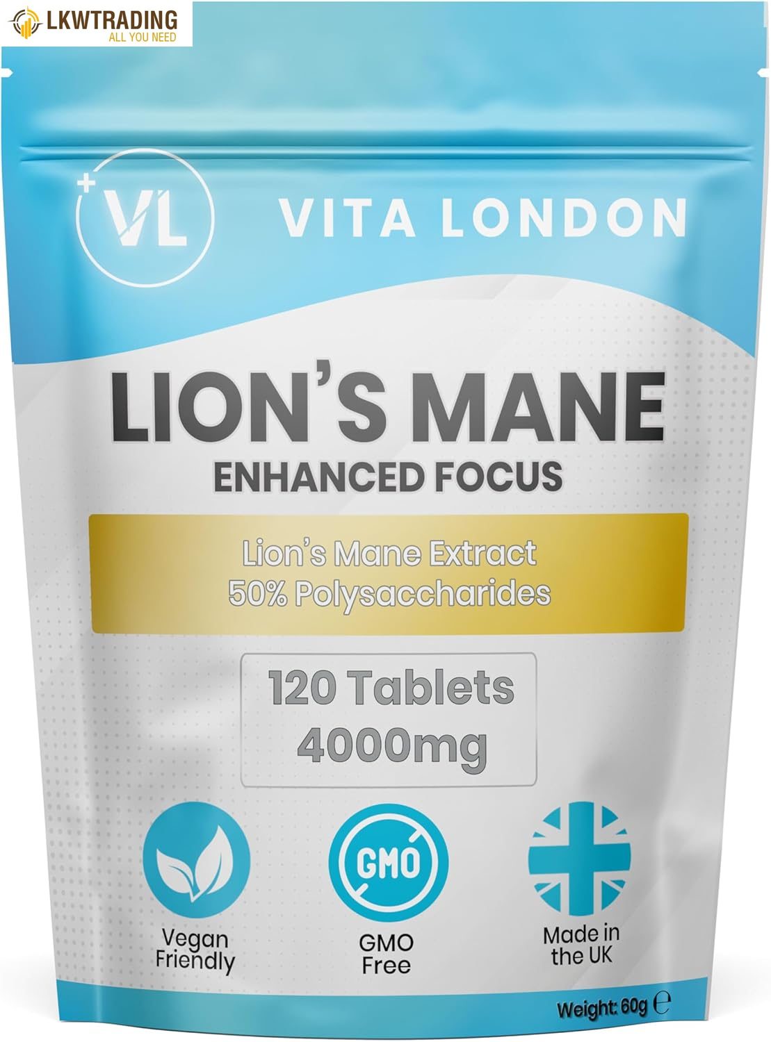 Lions Mane Extract Mushroom 4000mg 180 High Strength Vegan Tablets UK Made Brain