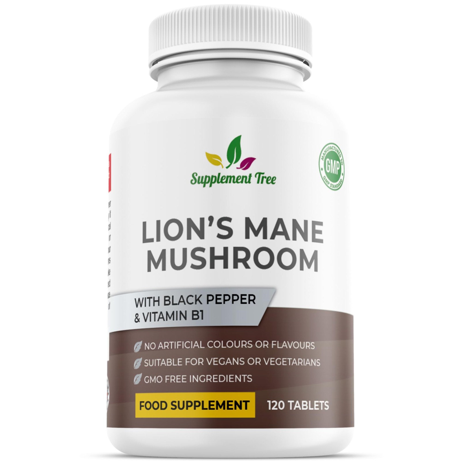 Lions Mane Supplement 4000mg Vitamin B1 Black Pepper Metal Focus 180 Tablets