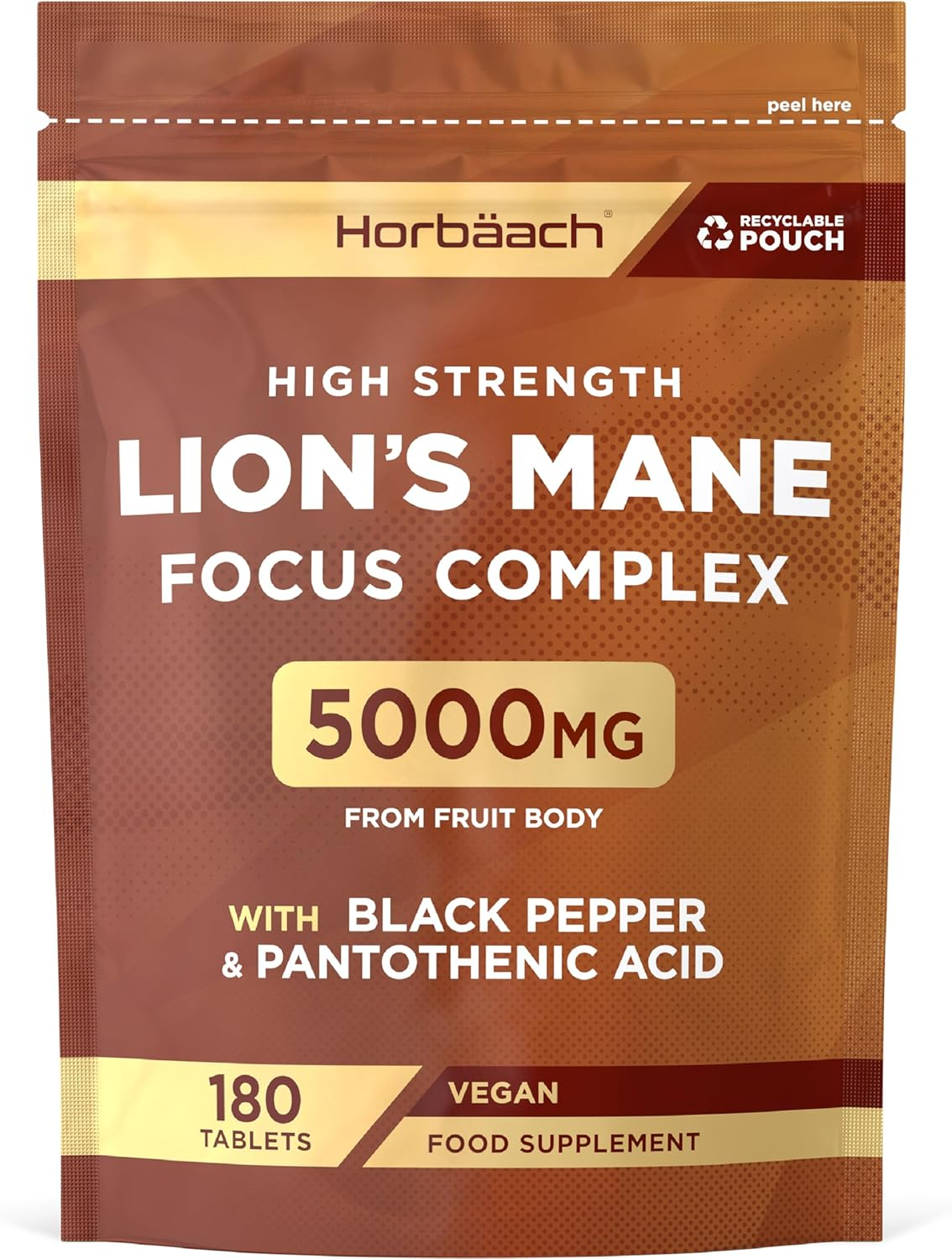 Lions Mane Supplement 5000Mg | Focus Complex with Vitamin B5 & Black Pepper | Li