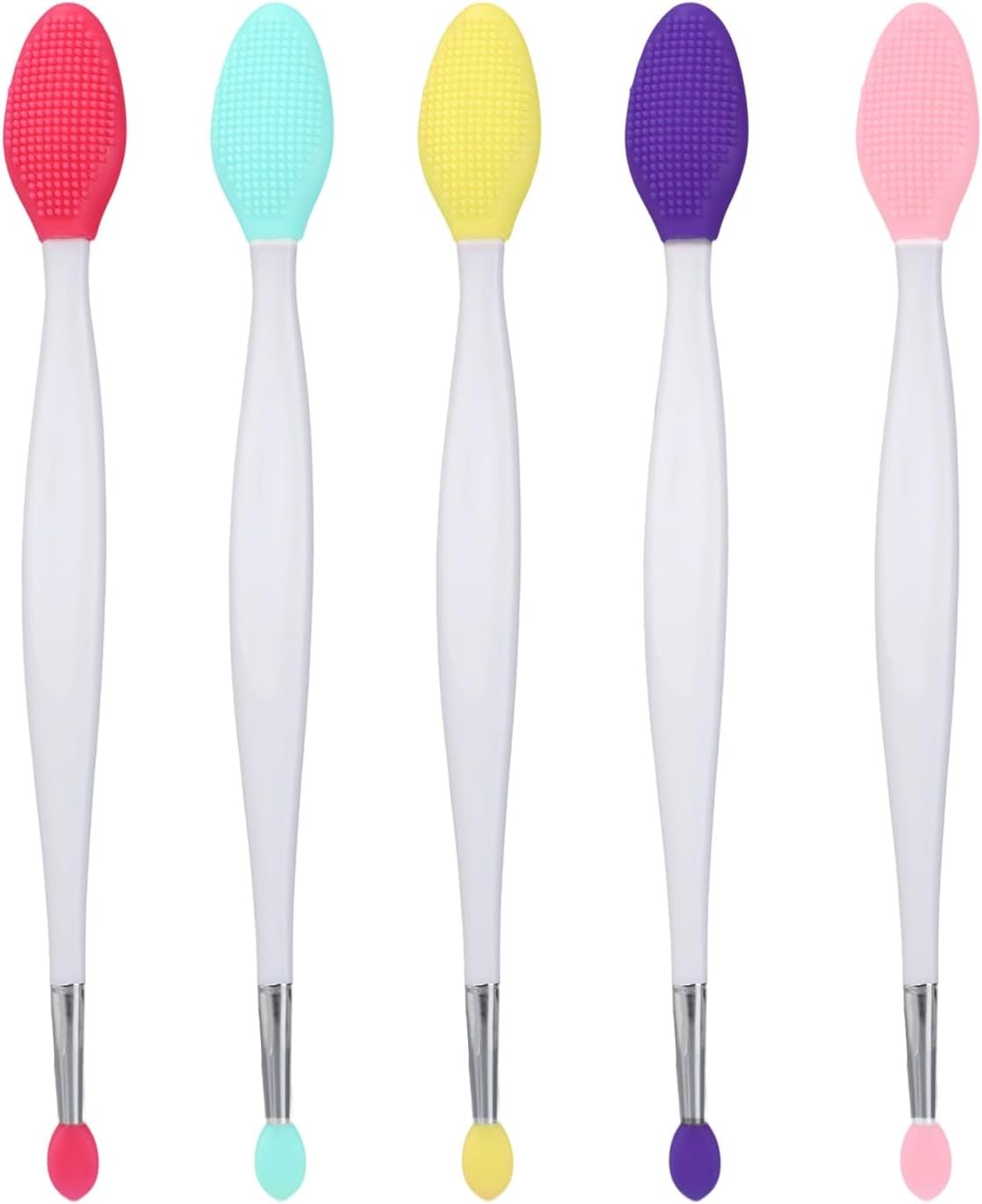 5pcs Gentle Dual-Ended Lip Scrub Brush, Reusable Silicone Lip Exfoliator & Appl