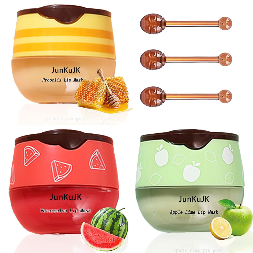2PCS Bee Balm Honey Pot Propolis Moisturizing Lip Mask Hydrating & Prevention Dry and Cracked Lip Scrubs Exfoliator