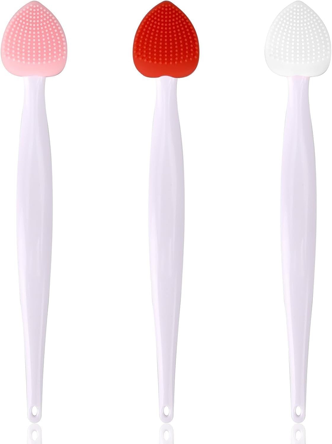 3Pcs Multicolor Lip Scrub Brush,Lip Scrubber Exfoliator Tool, Double-Makeup Bru