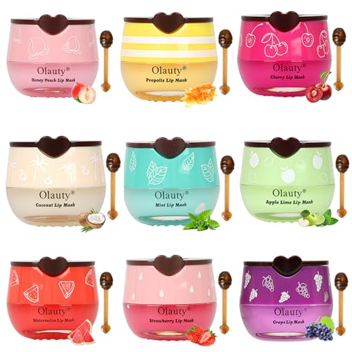 TITIMORE 8Pcs Bee Lip Balm Honey Pot,Strawberry Lip Mask Moisturizing Coconut & Peach Lip Masks Hydrating & Prevention Dry and Cracked Lip Scrubs Exfoliator Plumping Honey Lip Balm Uk