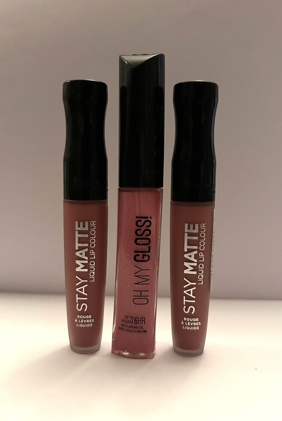 Rimmel 2x Stay Matte Liquid Lip Colour-Pink Blink & 1x Oh My Gloss-Stay My Rose