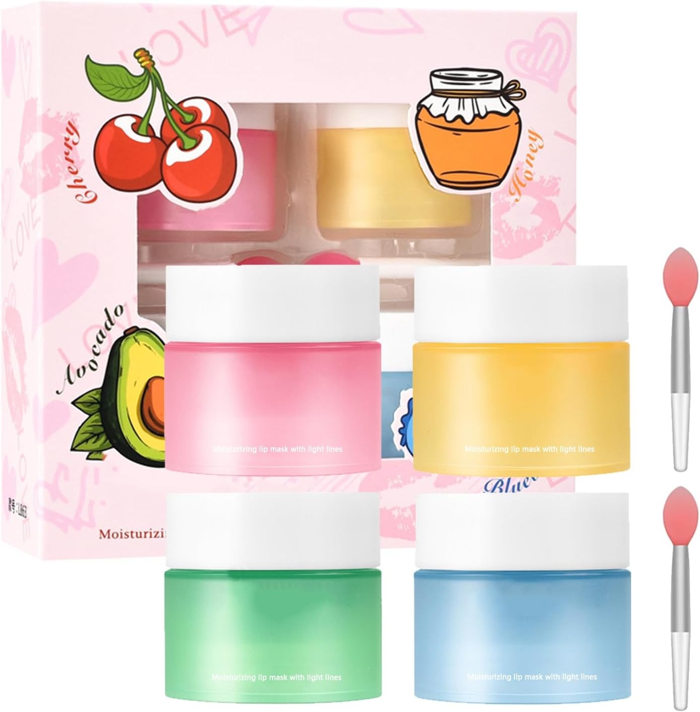 4-Pack Lip Sleeping Mask & Lip Balm Set - Fruit Moisturizing, Hydrating Lip Bal