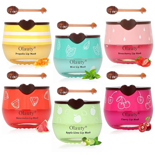 TITIMORE 6Pcs Bee Lip Balm Honey Pot,Bee Lip Mask Honey Lip Balm,Propolis Moisturizing Cherry Lip Sleeping Mask Reduces Lip Lines,Hydrating Prevention Dry Cracked Lip