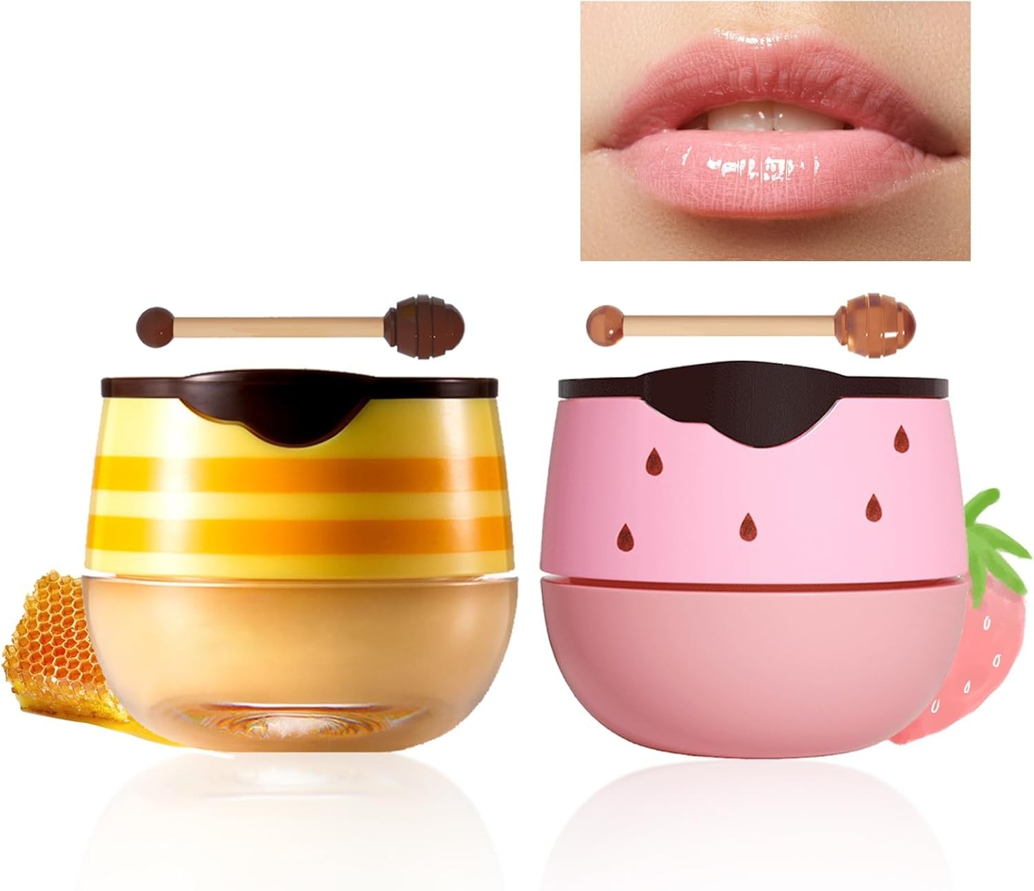 Lip Balm Natural Lip Care, Lip Sleeping Mask Honey & Strawberry Skincare Set, M