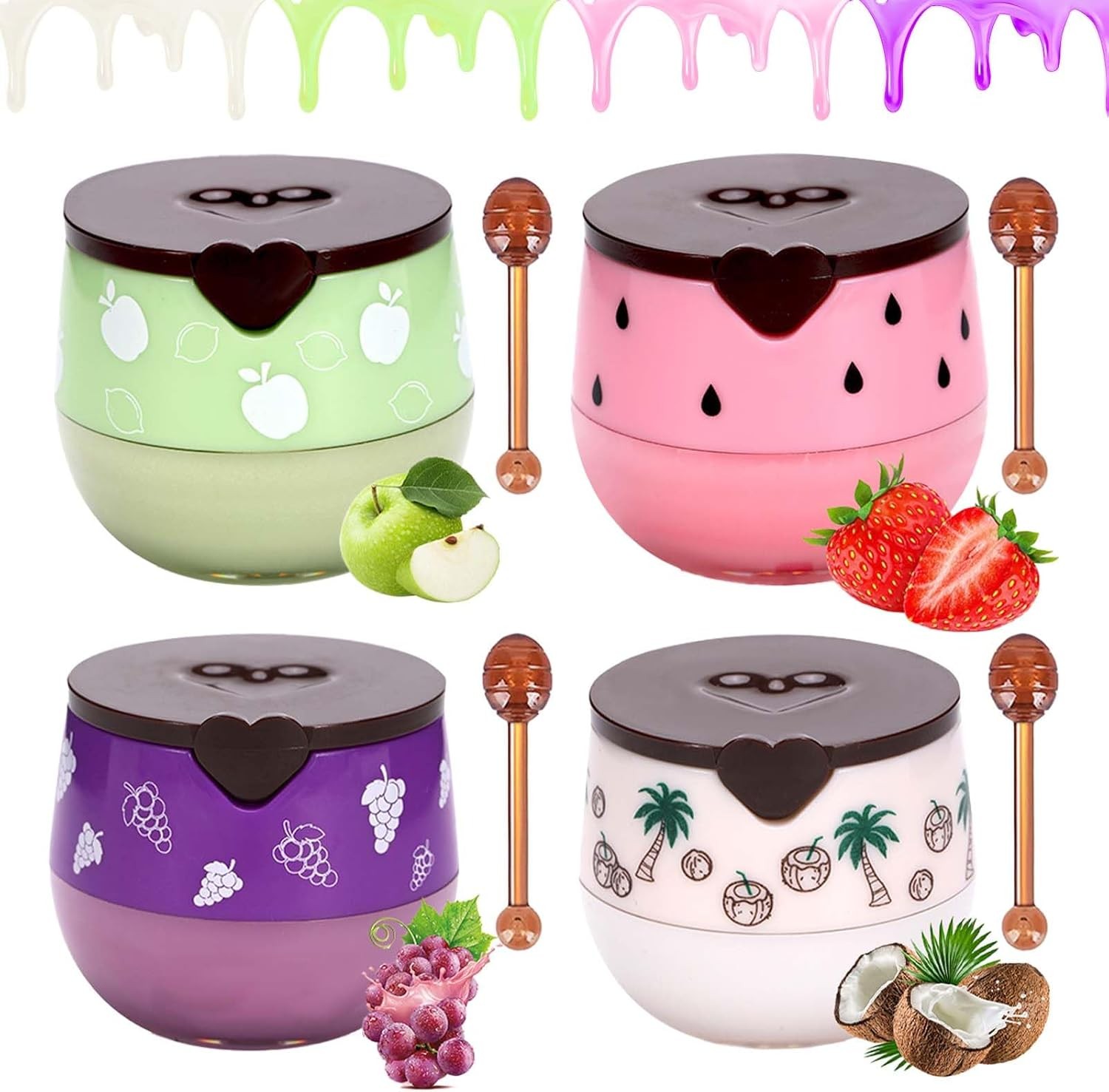 4 PCS Honey Lip Balm,Sleeping Lip Mask for Dry & Cracked Lips,Reduce Lip Lines,