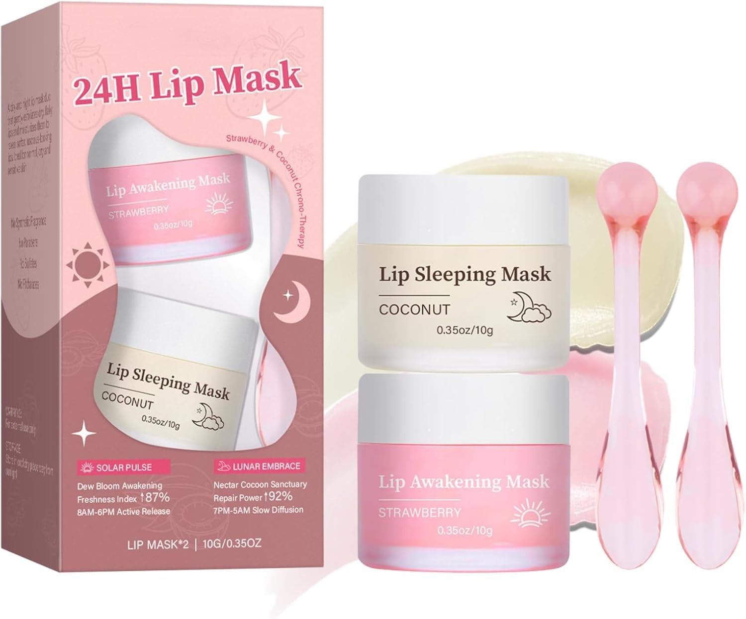 Lip Sleeping Mask Set – Day & Night Lip Mask Duo with Strawberry Awakening Ma