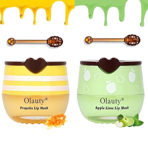 TITIMORE 2Pcs Bee Lip Balm Honey Pot,Apple & Watermelon Lip Mask,Propolis Moisturizing Lip Sleeping Mask Reduces Lip Lines,Hydrating Prevention Dry and Cracked Honey Lip Balm