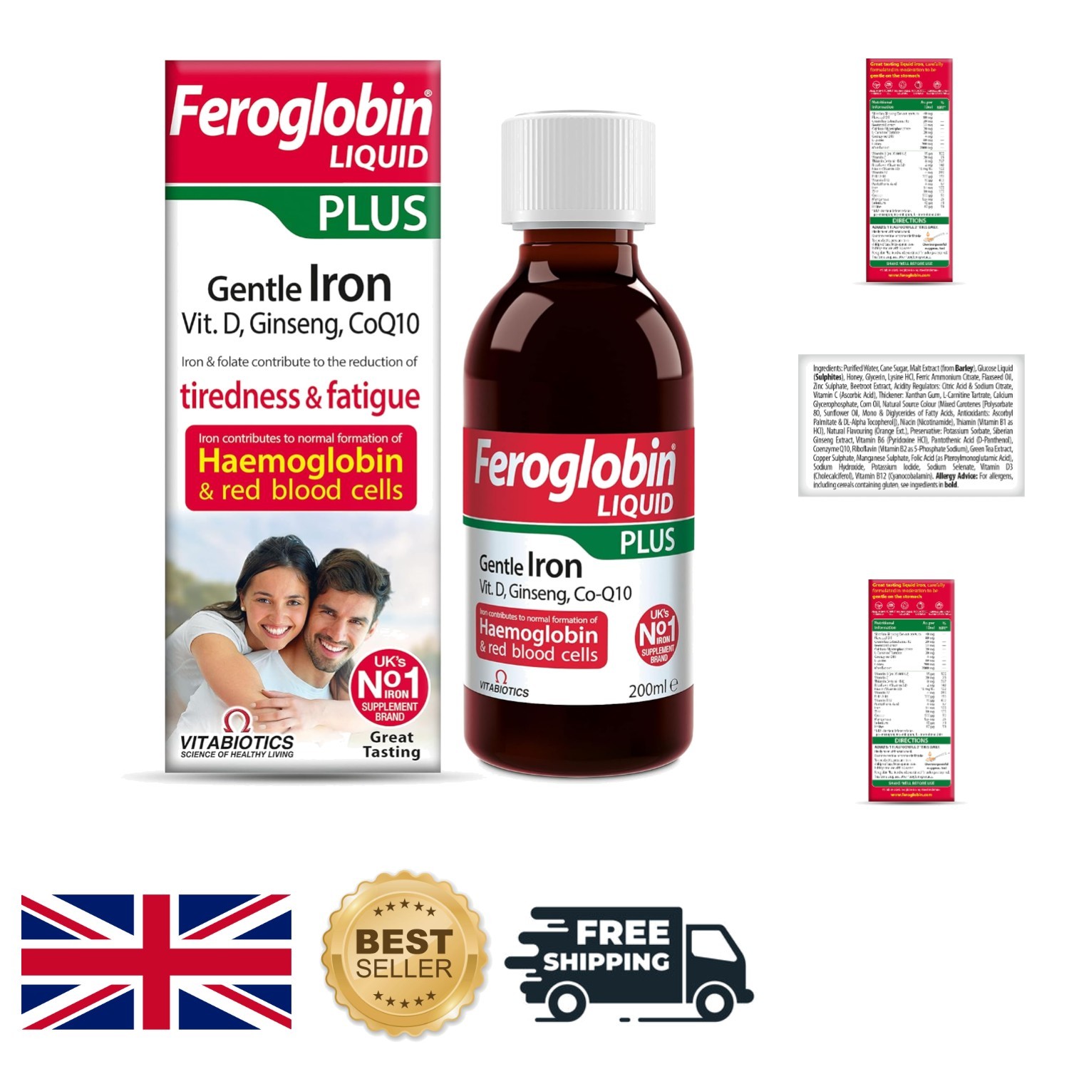 Feroglobin Plus Liquid Iron Supplement 200ml with Vitamin D & Ginseng for Energy