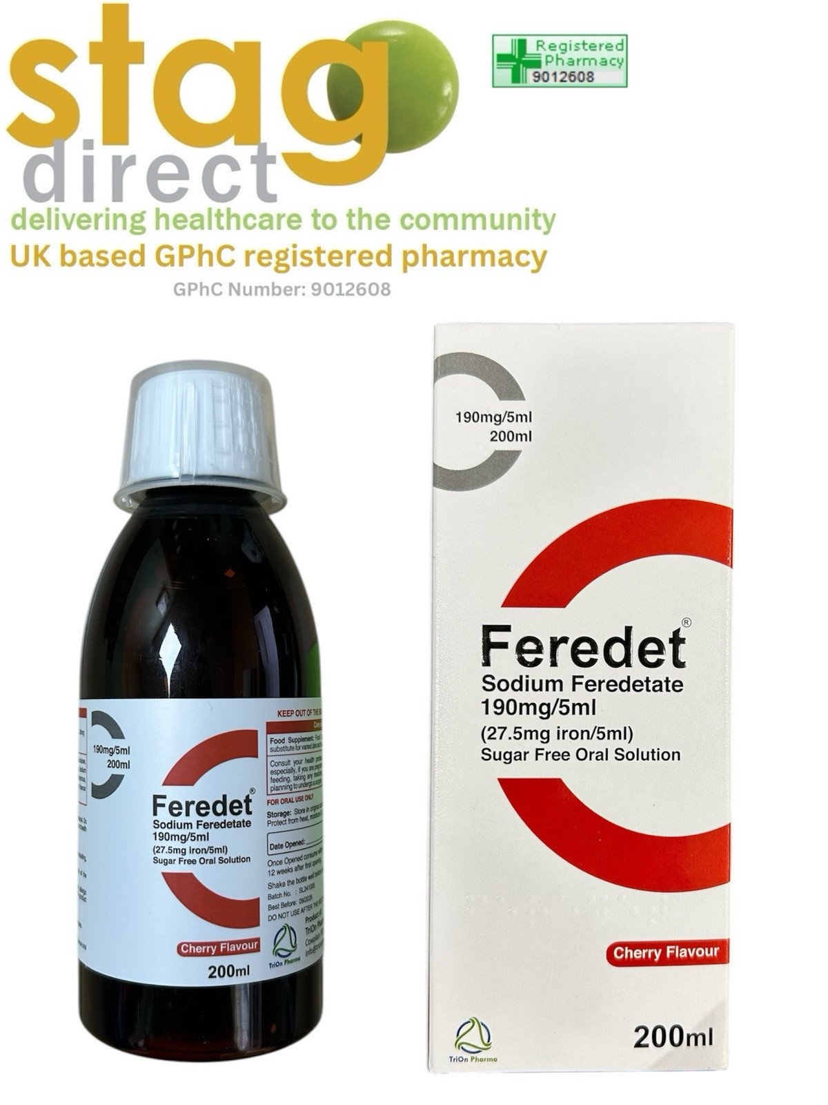 Feredet Iron Liquid Sugar Free - Cherry Flavour - Sodium Feredetate - 200ml