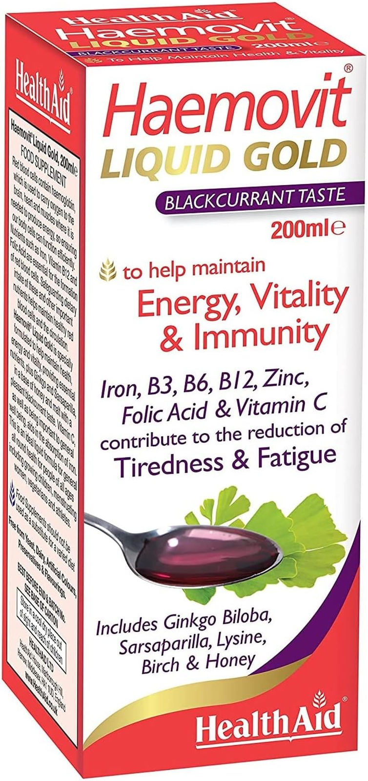HealthAid Haemovit Gold Tonic Liquid 200ml Iron Vitamin Boost Energy UK