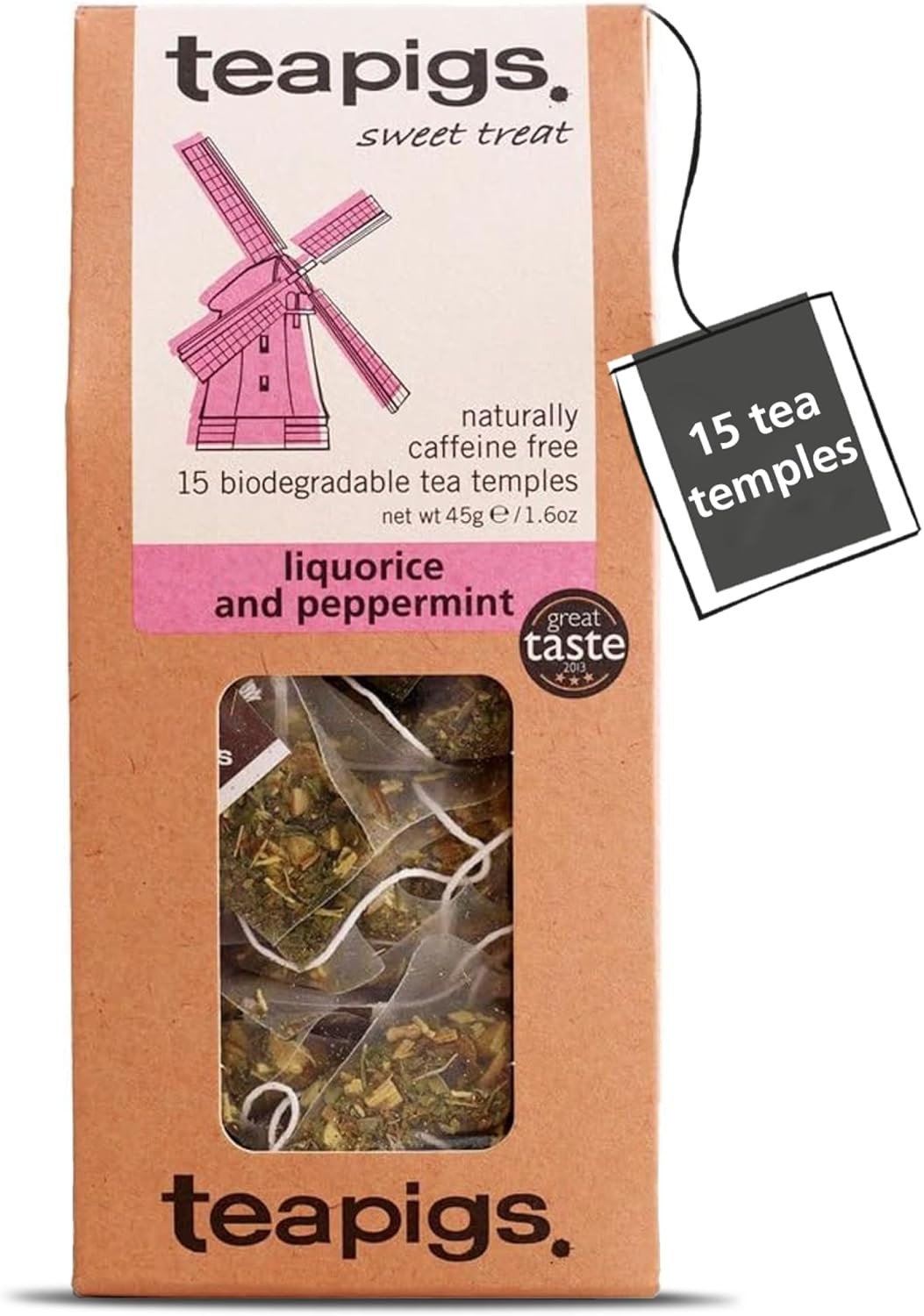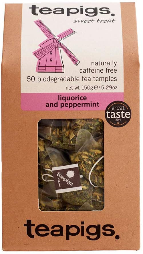 Teapigs Liquorice & Peppermint Herbal Tea - Caffeine-Free, Eco-Friendly 50 Bags