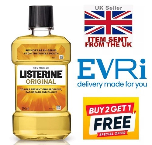 BUY 2 GET 1 FREE Listerine Original Mouthwash Prevent Gum Problems,👌Plaq 500 ml