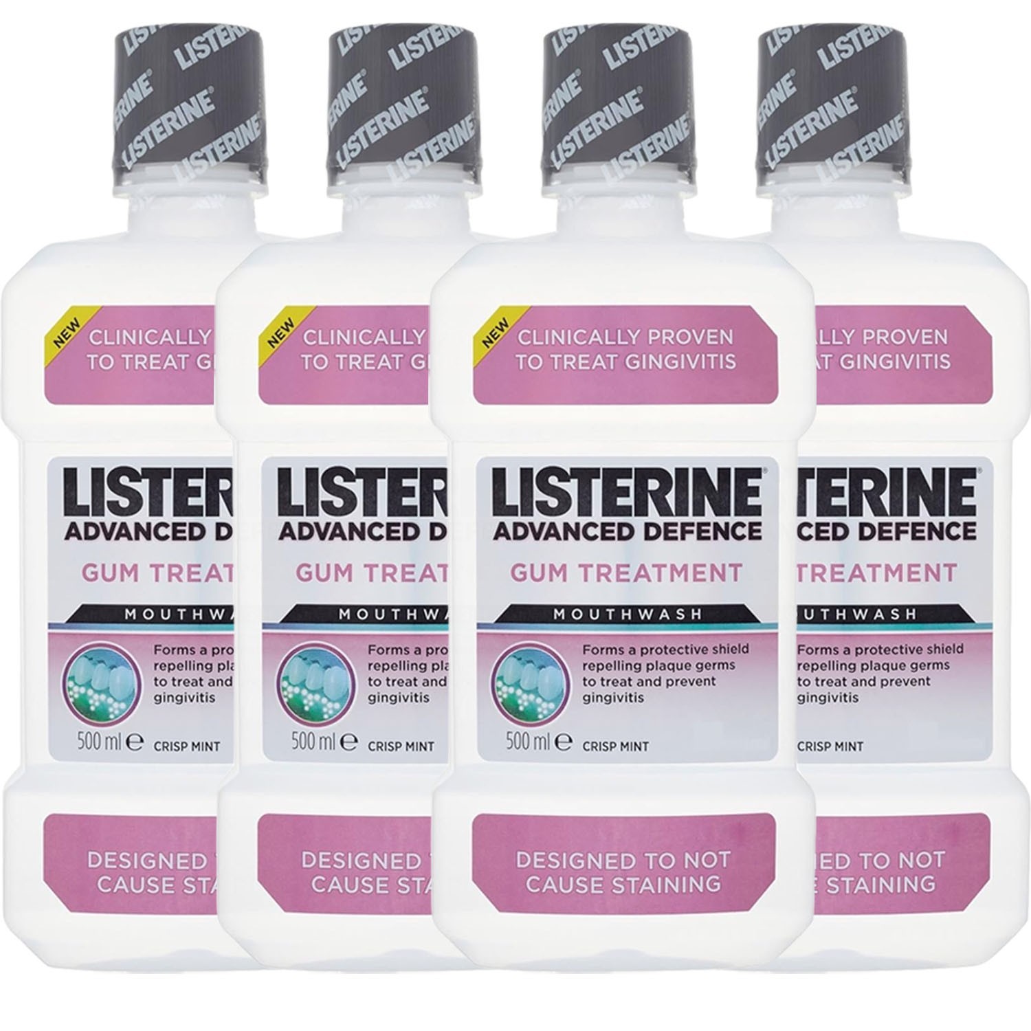Listerine Advanced Defence Gum Treatment Mouthwash Crisp Mint 4 x 500ml