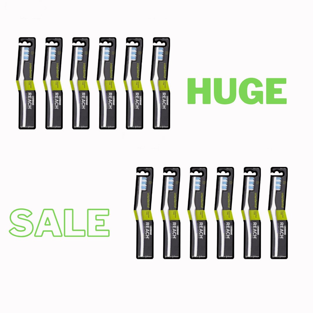 Listerine Reach Interdental Twin Medium Toothbrush Soft Rubber Grip / Pack Of 12