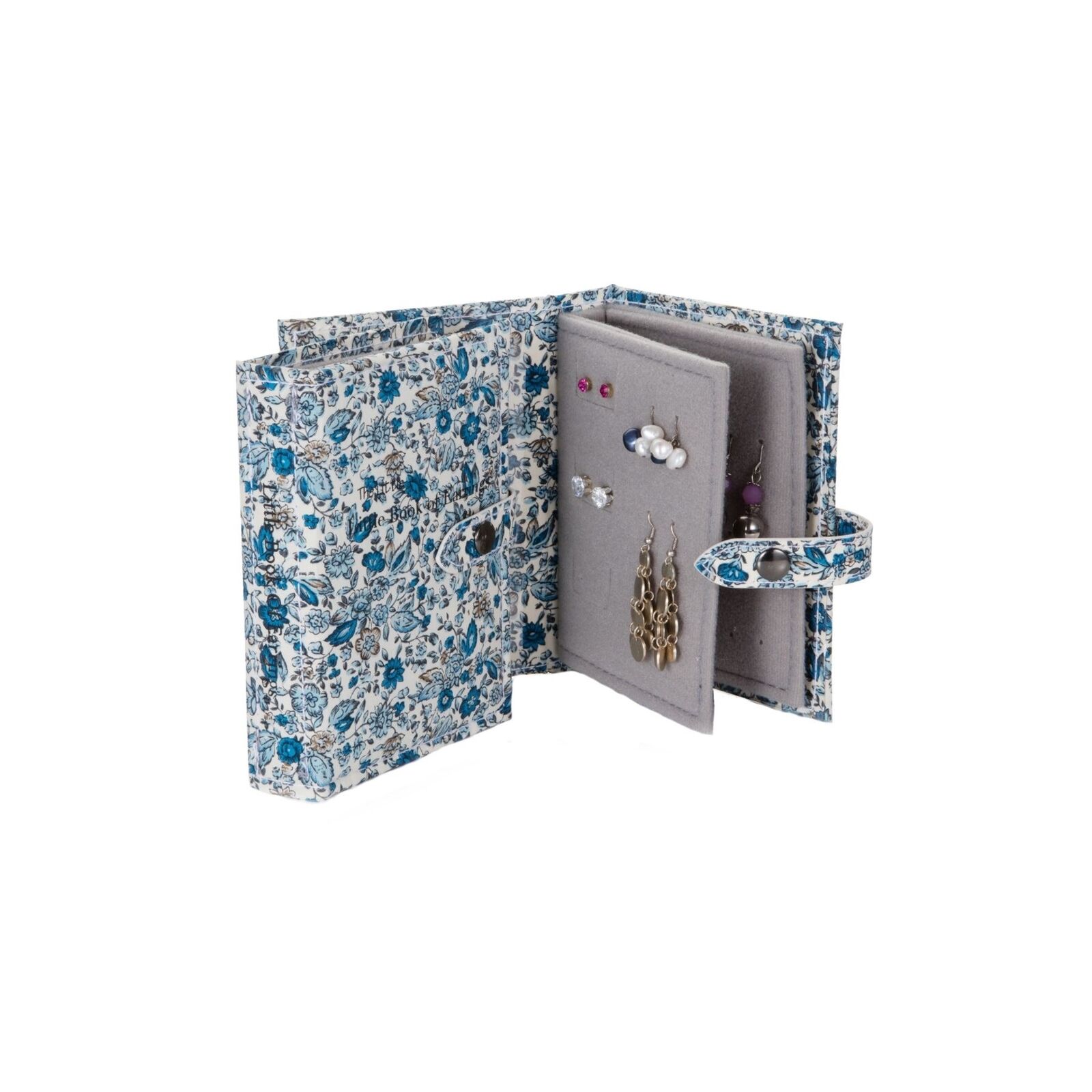 Little Book of Earrings Small Blue Flowers Jewellery Box Compact Storage Gift