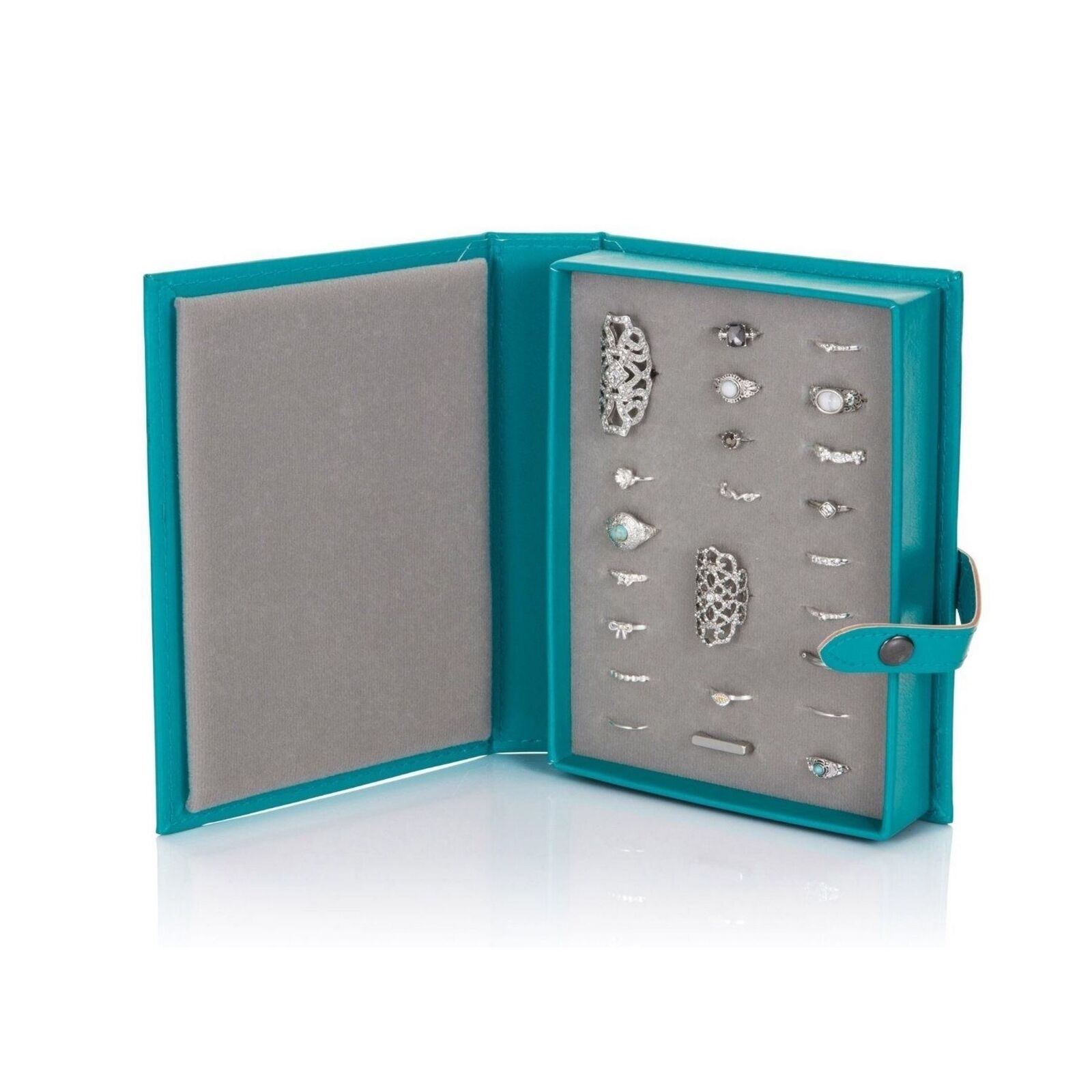 Ring Jewellery Box Teal Travel Storage Gift Idea Large Little Book Of Rings