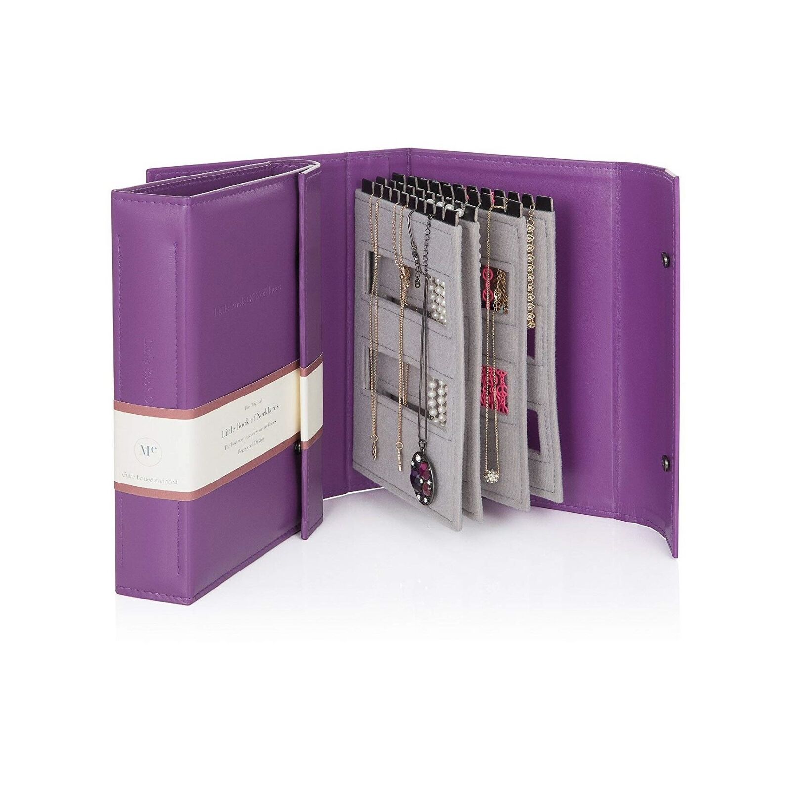Travel Jewellery Box Purple Little Book Of Large Necklace Storage Organiser Case