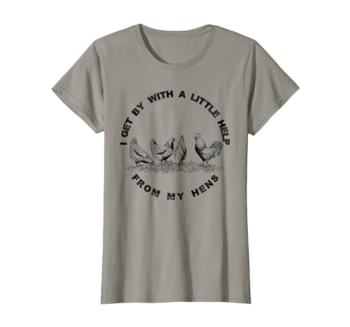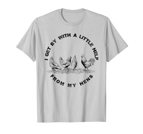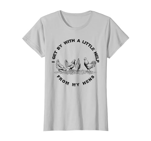 I Get by with a Little Help from My Hens Chicken Lovers T-Shirt, Women, Silver Grey, Medium