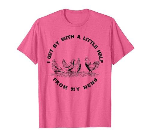 I Get by with a Little Help from My Hens Chicken Lovers T-Shirt, Women, Pink Heather, Medium