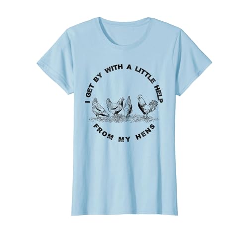 I Get by with a Little Help from My Hens Chicken Lovers T-Shirt, Women, Baby Blue, Small