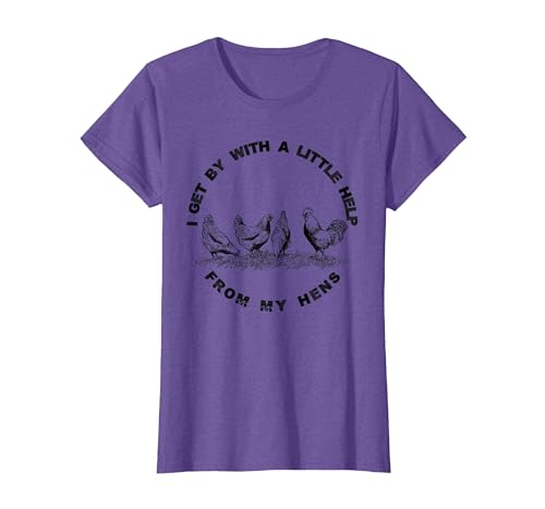 I Get by with a Little Help from My Hens Chicken Lovers T-Shirt, Women, Purple Heather, X-Small