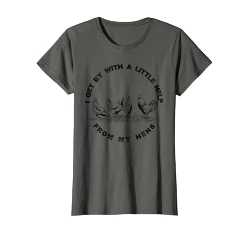 I Get by with a Little Help from My Hens Chicken Lovers T-Shirt, Women, Asphalt Grey, Medium