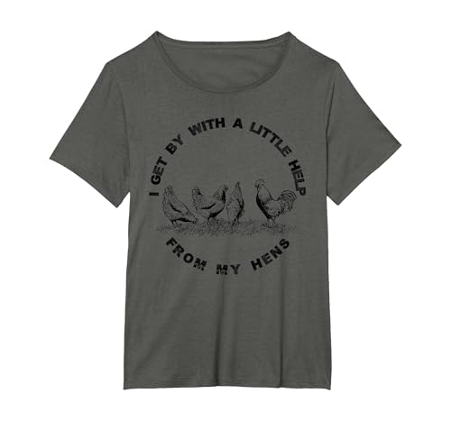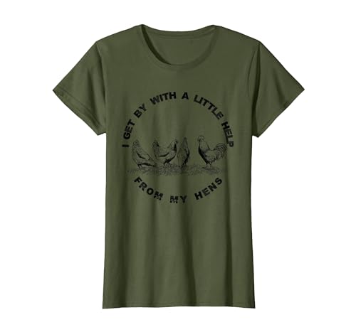I Get by with a Little Help from My Hens Chicken Lovers T-Shirt, Women, Olive Green, Medium