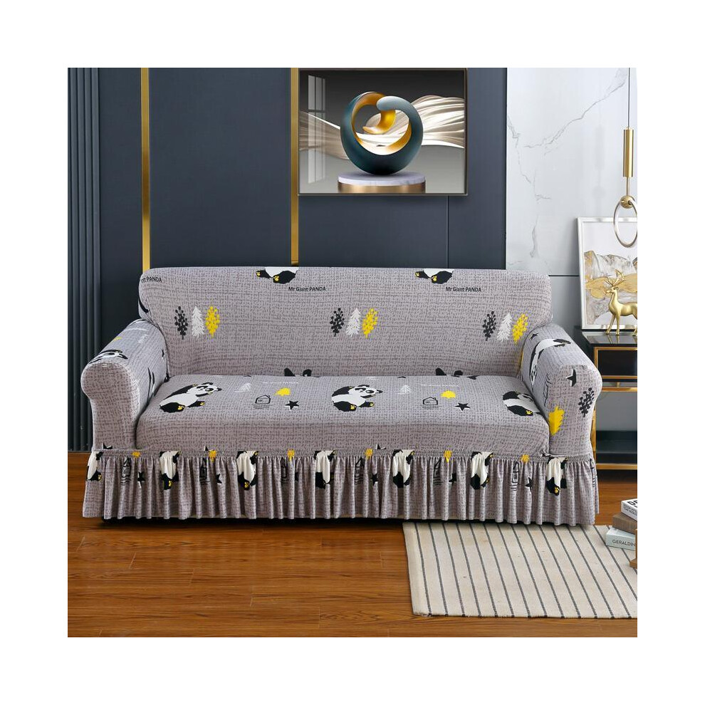 (Little Panda, 4 Seats) Sofa Cover with Skirt, 1 Count Non-slip Sofa Slipcover, Couch Sofa Protector for Home Living Room Bedroom Hotel Dormitory