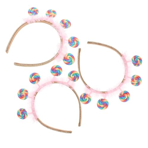 FRCOLOR 3pcs Candy Lollipop Headbands for Little Creative Cartoon Hair Accessories with Secure Fit Charming Pink Design for Birthday Parties Theme Parks and Dress Up Fun