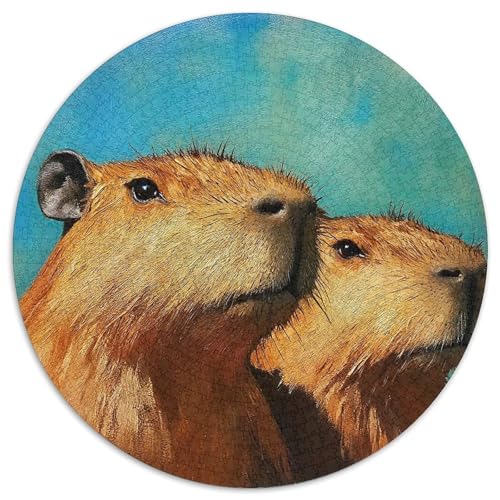 Cute Capybara 1000 Piece Round Puzzle for Adults Kids 14+ Cute Little Animals Jigsaws Creative Unique Challenge Games Impossible Hard Difficult Challenging Puzzles 1000pcs (67.5x67.5cm)