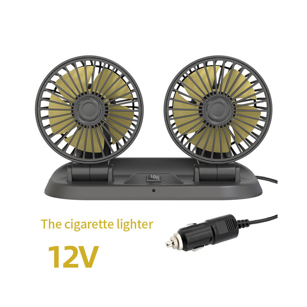 (Yellow) Car Double-Headed Folding Fan Rotatable Rotatable Head Creative Little Fan