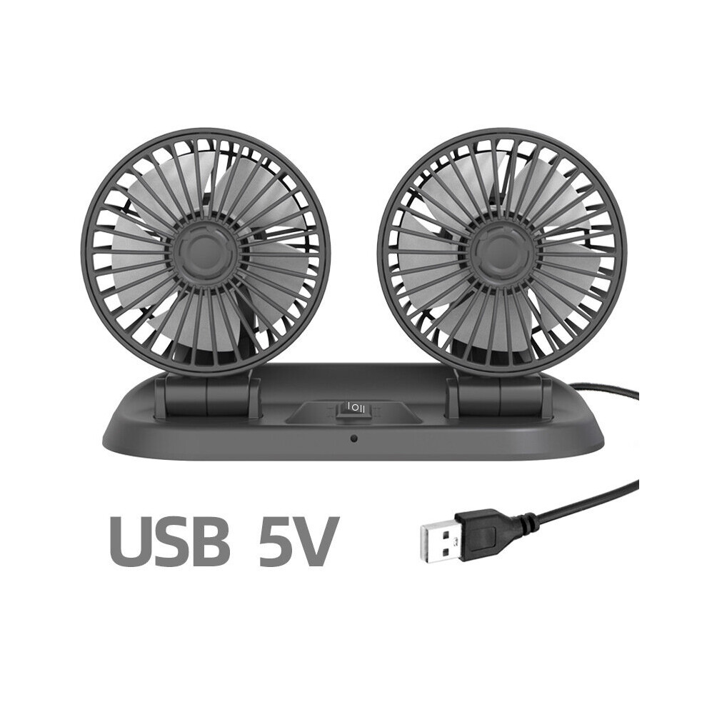 (Black) Car Double-Headed Folding Fan Rotatable Rotatable Head Creative Little Fan