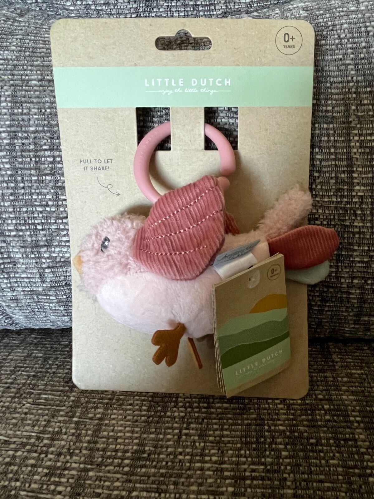 Little Dutch Flowers & Butterflies Pull & Shake Pink Bird Baby Pram Toy New