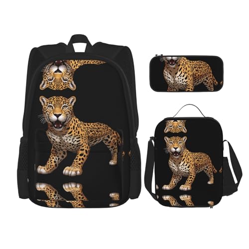 WZYCWB Cute little tiger Campus life backpack set (3 pieces) - school bag + pencil case + lunch bag, meet all the daily needs of students!
