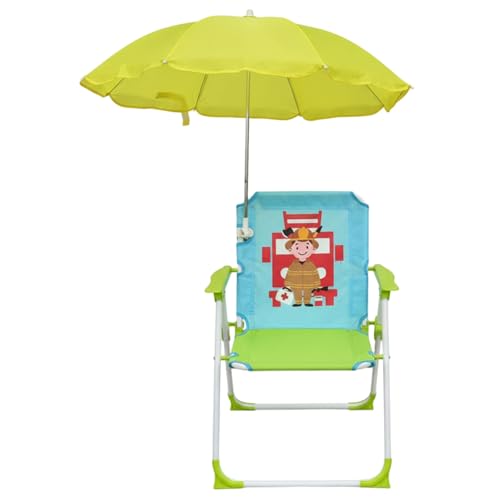 Elyebxj Kids Beach Chair with Umbrella - Portable Folding Chair for Toddler & Little Kids, Green Canvas Outdoor Camping Seat with Sun Shade for Beach, Pool, Park