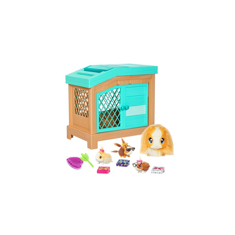 Little Live Pets 26410 Soft, Interactive Mama Guinea Pig and her Hutch, and her 3 Surprise Babies. 20+ Sounds & Reactions. Batteries